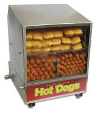 This high quality steamer holds up to 164 hotdogs and 36 buns.