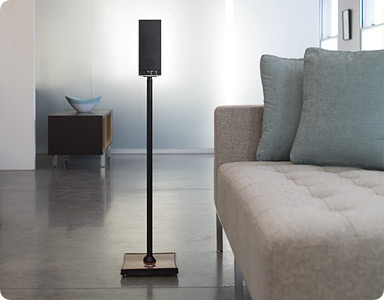 The Gemini Speaker Stands are stylish, yet functional and designed with interchangeable base inserts that offer four color options to match any decor.