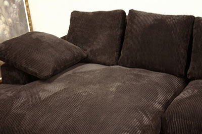 - Dark brown velvety microfiber upholstery with a ribbed texture